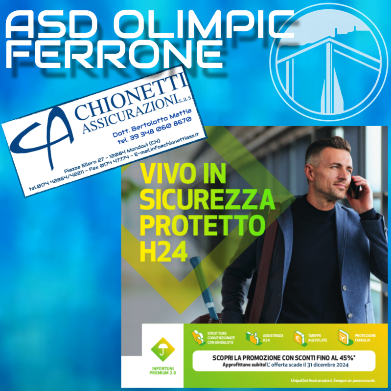© 2024 A.S.D. OLIMPIC FERRONE - via San Bernolfo 16 - 12084 Mondovì (CN) - Codice Fiscale / P.Iva 02934650041